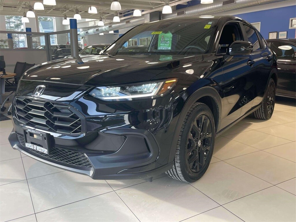 Certified. Black 2025 Honda HR-V Sport 4D Sport Utility AWD CVT 2.0L I4 DOHC 16V i-VTEC 25/30 City/Highway MPG